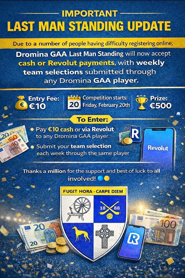 We’re kicking off a Last Man Standing competition and it’s all to support Dromina GAA