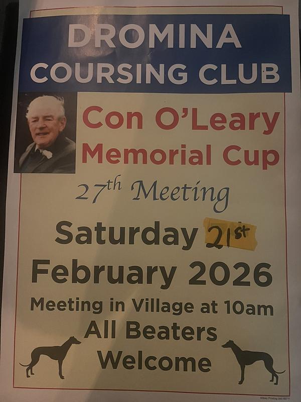 Dromina Coursing Big Day this Sunday 18th Jan, meeting...
